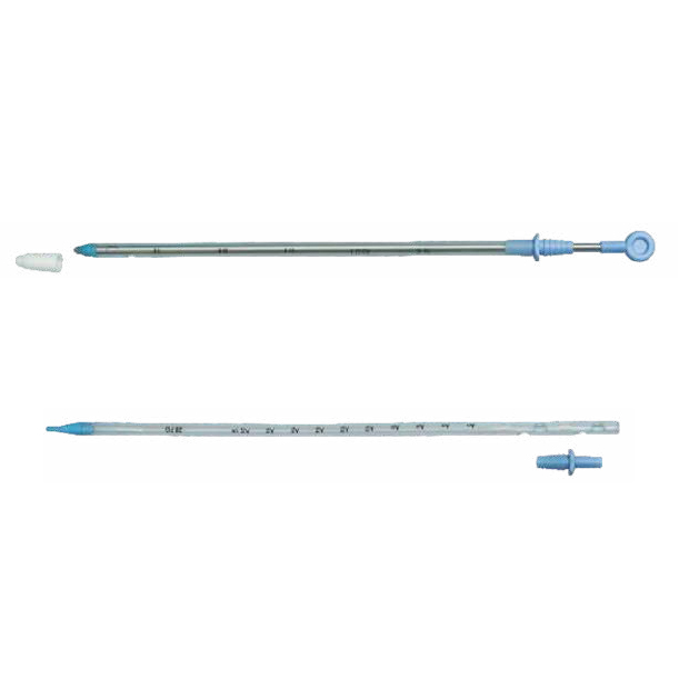 With radio-opaque line and marking at every 2 cm from the last eye.